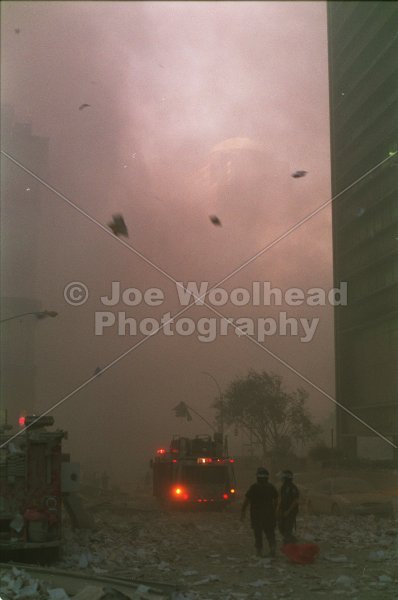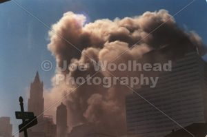 11 September 2001 – New York – Smoke pours from the World Trade Center complex following a terrorist attack September 11, 2001. PHOTO CREDIT: Joseph Woolhead / SIPA PRESS
